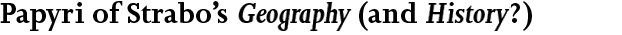What is a ‘papyrus’? A ‘papyrus’ is a fragment of a papyrus roll. (The singular term ‘papyrus’ is applied to more than one fragment, where the fragments come from the same roll.) The Greek word for papyrus roll is normally translated into English as ‘book.’ This is accurate in that the roll constituted the writing technology of antiquity but misleading in that the roll did not of course look like what we would today call a ‘book.’ Moreover, given the limited space available in a papyrus roll, a given literary work might take up more than a single roll, so there was not necessarily a one-on-one equivalency between a work and a ‘book.’ Papyri are often scrappy, measuring just a few inches and preserving only the beginnings (or middles or ends) of the lines of writing which covered the roll in neatly laid-out columns. If we are lucky, the salvaged words are sufficient to enable us to identify the literary work from which the lines come. In the case of Strabo, it is usually assumed that if the words can be identified as coming from, for example, Book 2 of Strabo's Geography then the papyrus is a fragment of a roll which, before it disintegrated or was torn up, contained Book 2 as a whole. Some caution is necessary. The fragment may, for example, have come from an abridged version of Strabo’s work. The following papyri of Strabo’s