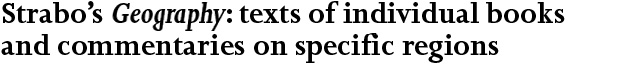 Péloponnèse de Strabon. Étude de géographie historique. LIPPMAN, MICHAEL. 2004. ‘Strabo 10.2.4 and the Synoecism of ‘Newer’ Pleuron,’ Hesperia 73 (2004): 497-512. Lippman shows how a misreading of Strabo 10.2.4 has led to a misreading of the history of Pleuron; and provides a useful appendix on Strabo’s use of sunoikivzw. Books 11-14 ( NICOLAI, ROBERTO; TRAINA, GIUSTO (2000), eds and trs. Strabone. Geografia. Il Caucaso e l'Asia Minore. Books 11-12. TRAINA, GIUSTO, ed. 2001. Studi sull’ XI libro dei Geographika di Strabone. Con la collaborazione di Alessio
